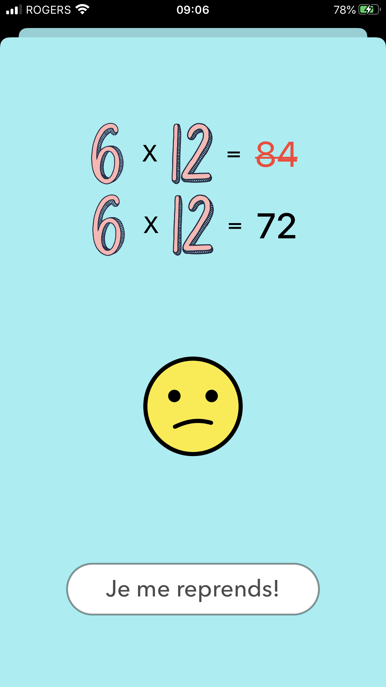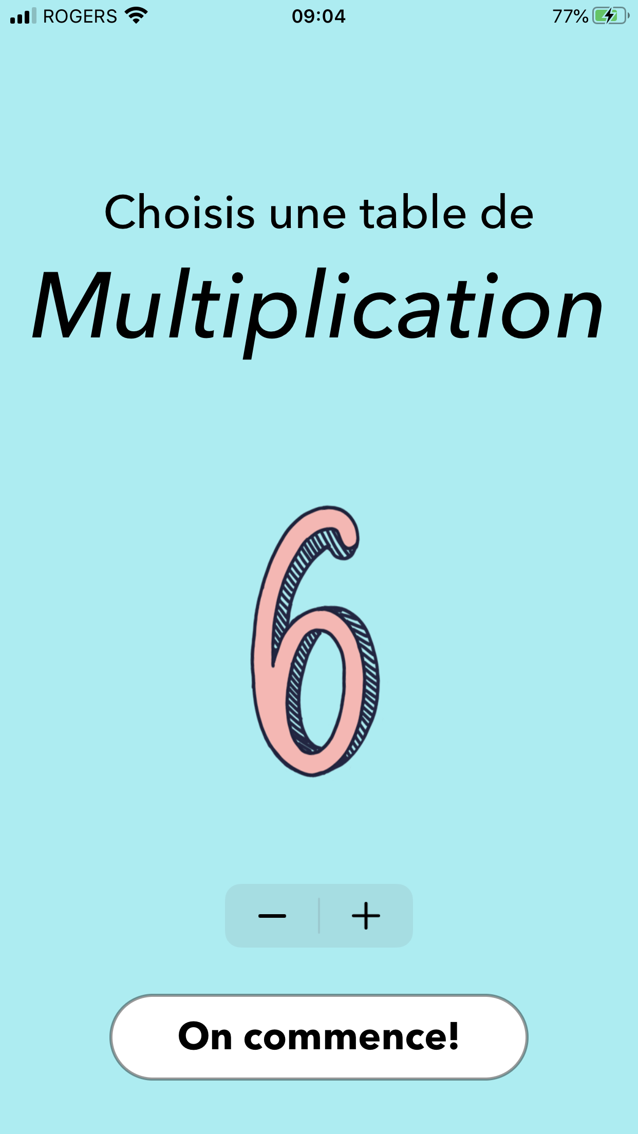L’application va demander les multiplications de la table choisie de façon aléatoire au début, dans le but de connaître les multiplications que votre enfant connaît déjà bien et découvrir les multiplications qu’il ou elle connaît moins pour ensuite se concentrer sur ces dernières.