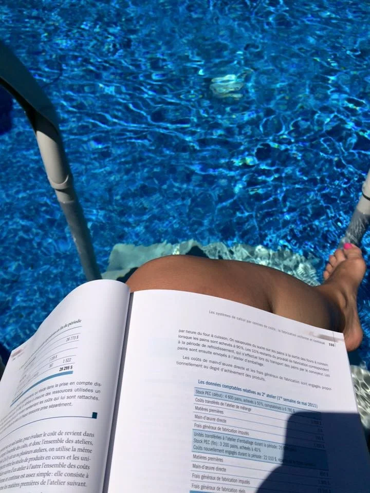 - Se gâter! Parfois j’allais étudier au café du coin avec un chocolat chaud et morceau de gâteau, pour changer d’air et me faire du bien! D'autres fois, je choisissais de faire mes lectures les pieds dans l’eau de la piscine, pour profiter quand même du soleil.