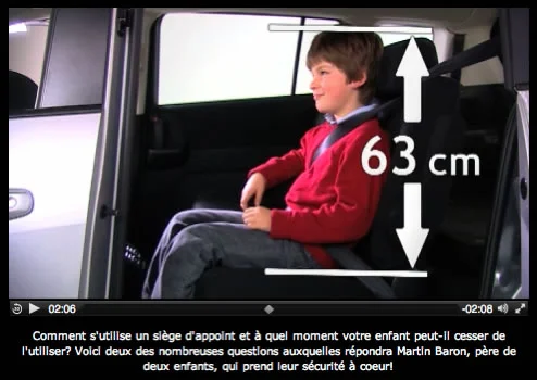 ..si la tête de votre enfant n'est pas à moins de 2.5 cm du haut de son siège d'auto, visionnez ce vidéo.