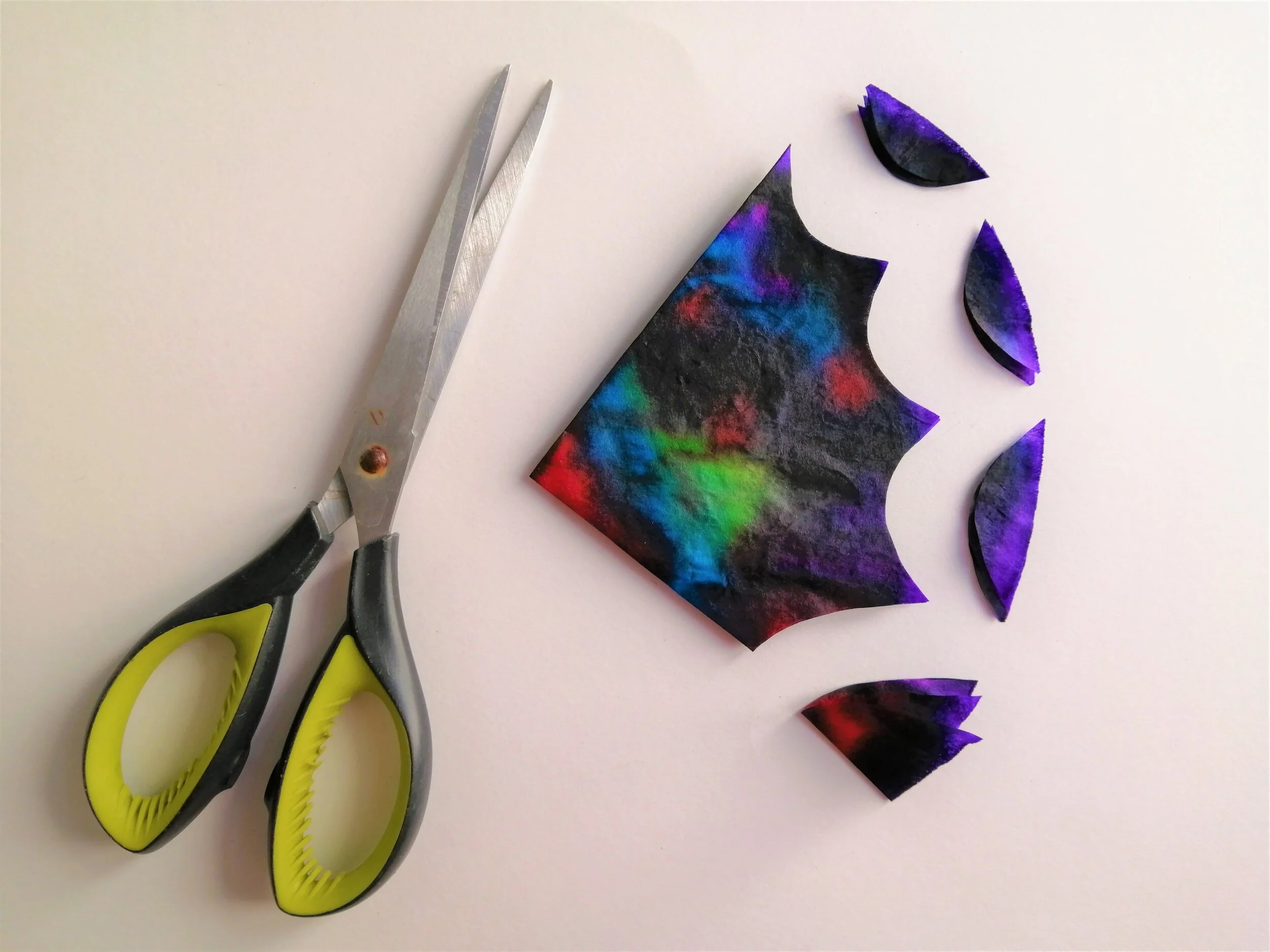 5. Lorsque les filtres à café seront complètement secs, pliez à nouveau le demi-filtre en deux et coupez avec délicatesse le côté du filtre pour créer le motif d’ailes.