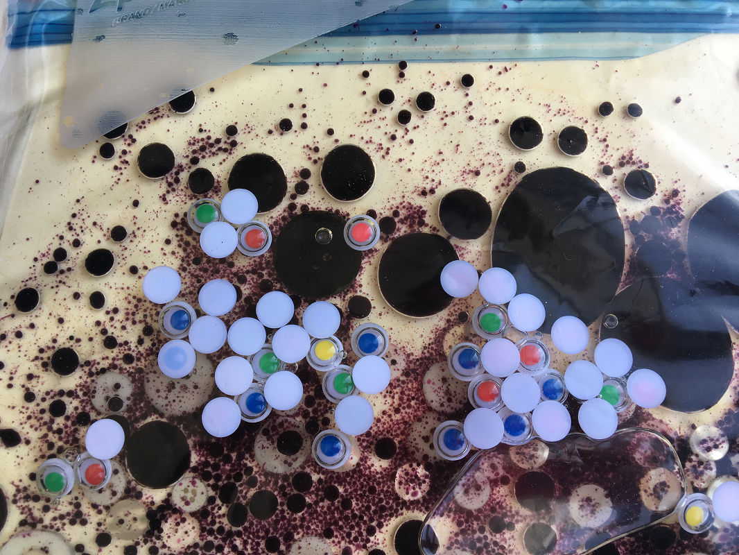 3. Assurez-vous de bien refermer le sac et collez-le directement sur la table ou sur la tablette de votre chaise haute. L’effet obtenu s’apparente drôlement aux lampes effervescentes des années 70!