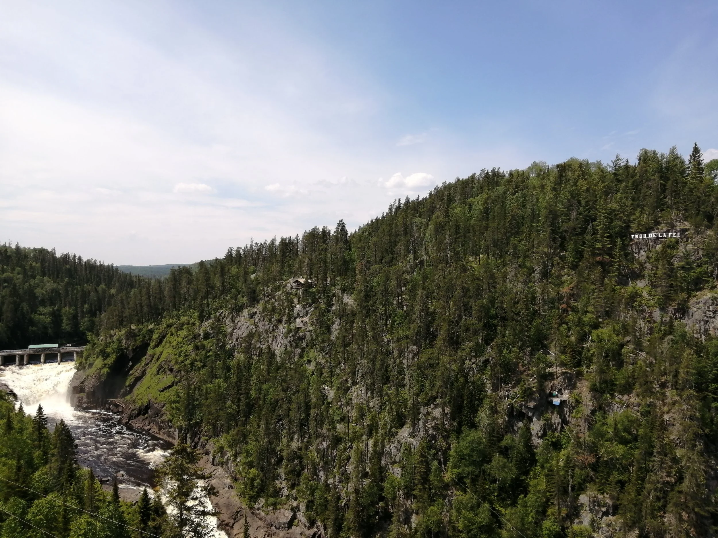 Notre deuxième arrêt fut au parc de la caverne du Trou de la Fée. Dès notre arrivée, nous avons été charmés par la vue sur le canyon de la rivière Métabetchouane, que nous offre la terrasse du tout nouveau belvédère. Ce point d’observation nous donne vraiment l’impression d’être les maîtres du monde.
