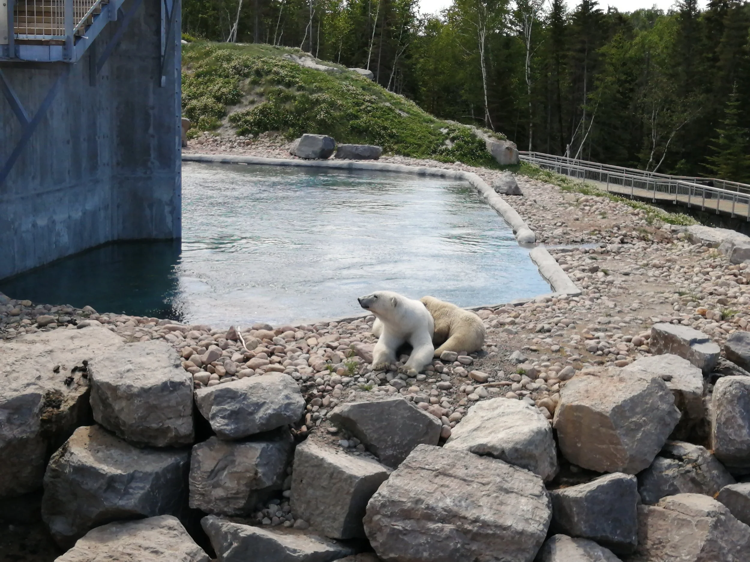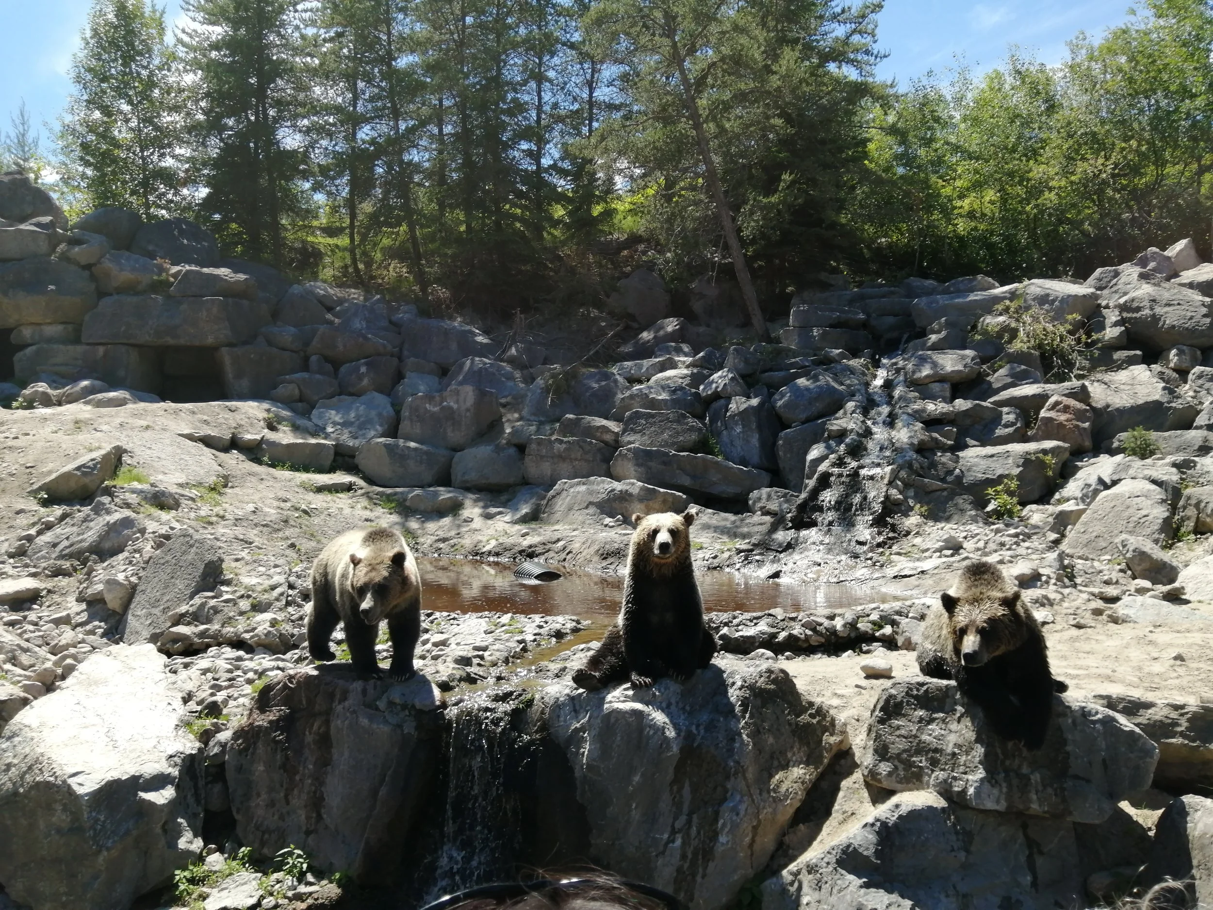 Nous avons conclu notre aventure au Lac-Saint-Jean en passant la journée au Zoo sauvage de Saint-Félicien. Ma famille et moi adorons visiter de nouveaux parcs animaliers. Il y avait longtemps que nous souhaitions venir faire un tour à Saint-Félicien et je dois dire que notre visite fut encore plus exceptionnelle que ce à quoi nous nous attendions. Lorsque l’on dit « sauvage », ce n’est pas pour rien; la nature est partout! Les sentiers d’un enclos à l’autre nous donnent régulièrement l’impression d’être en forêt. Les animaux ont de grands espaces naturels adaptés à leurs besoins. Nous sommes loin des cages froides de métal, disons! Parlez-en à ce trio de frères grizzlis!
