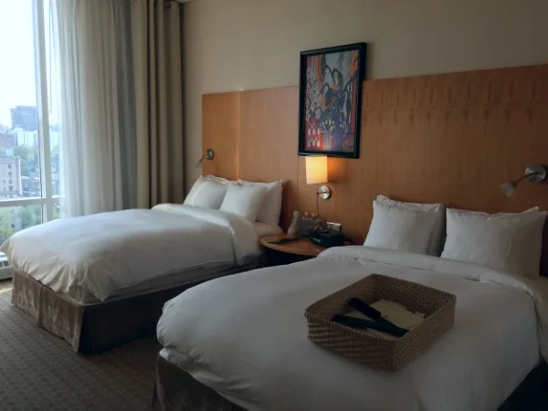 Bien que la chambre était un peu étroite, elle était amplement grande pour une famille de quatre. Coup de cœur pour la salle de bain. L’aménagement était parfait et j’ai beaucoup aimé les produits offerts. De plus, j’ai bien aimé les grandes fenêtres. Fiston a passé beaucoup de temps à regarder à l’extérieur. La vue le fascinait.